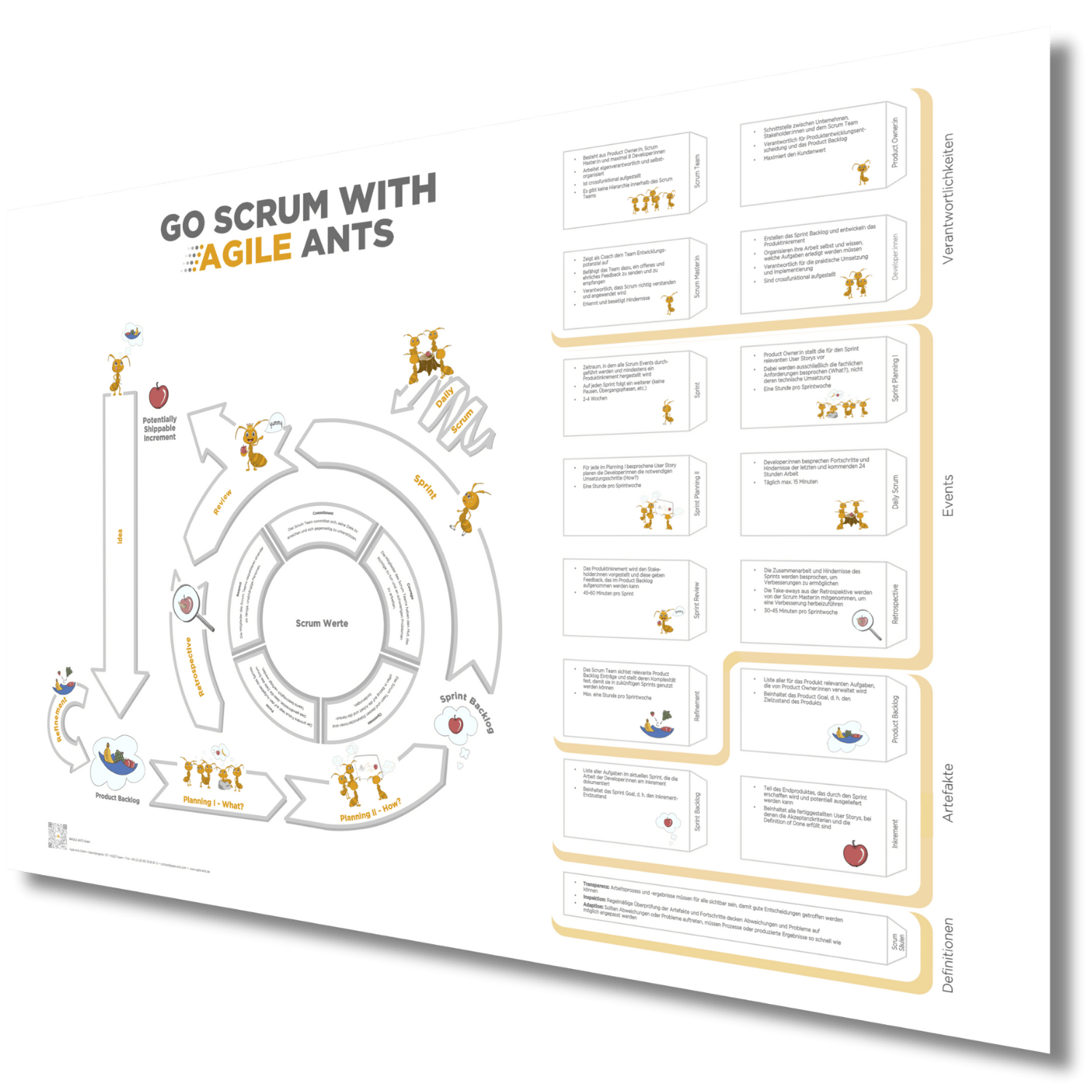 Was ist der nächste Schritt im Prozess? Wer ist verantwortlich? Das Scrum Poster hilft dir alles im Blick zu behalten.